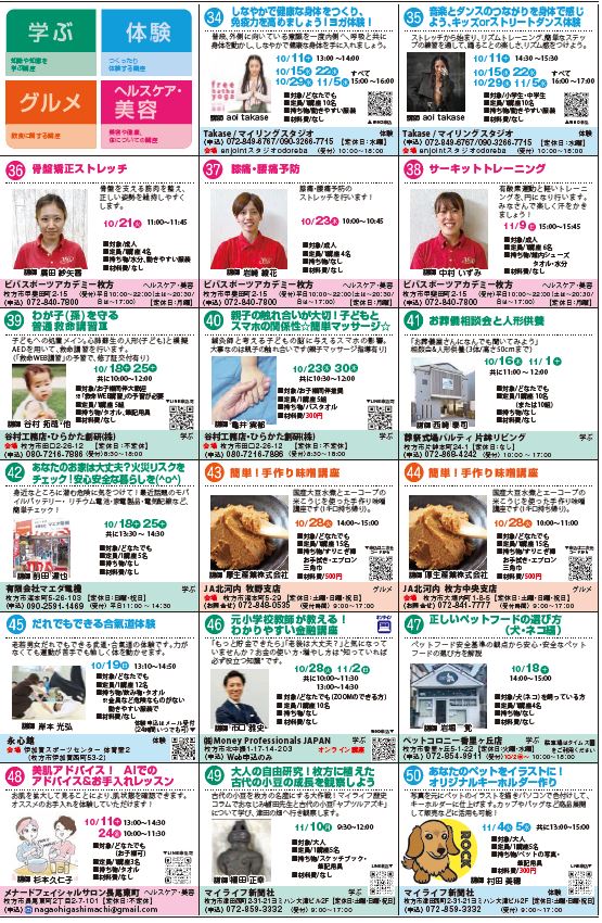 【ひらかた まちゼミ】とは、枚方市のお店の人が講師になって、専門の知識やコツを無料で教えてくれるミニ講座です。講座は多種多様で50講座があり、楽しんだり学んだりできます。