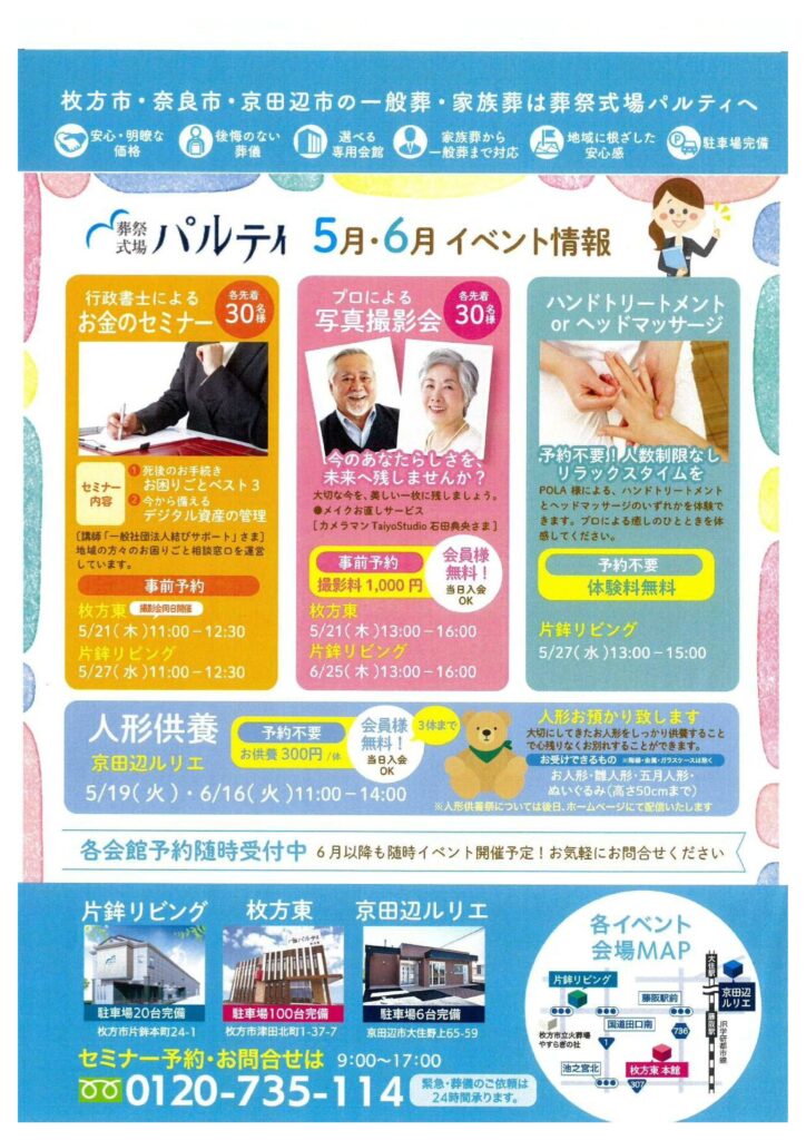 4/22(水) 枚方東  4/24(金) 片鉾リビング 各会館にて